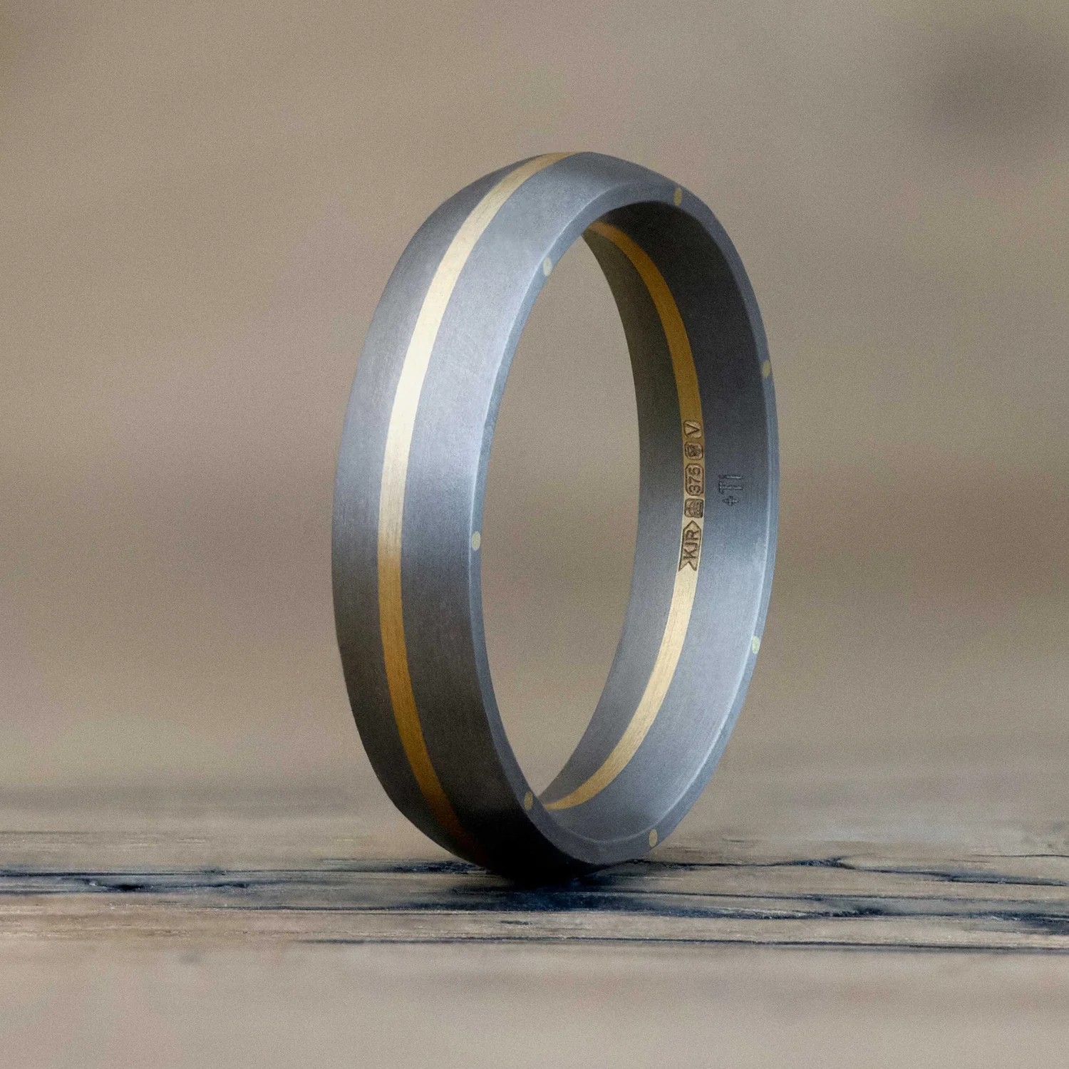 Titanium And Gold Court Rivet Wedding Ring Shiruba Tree Handmade Rings